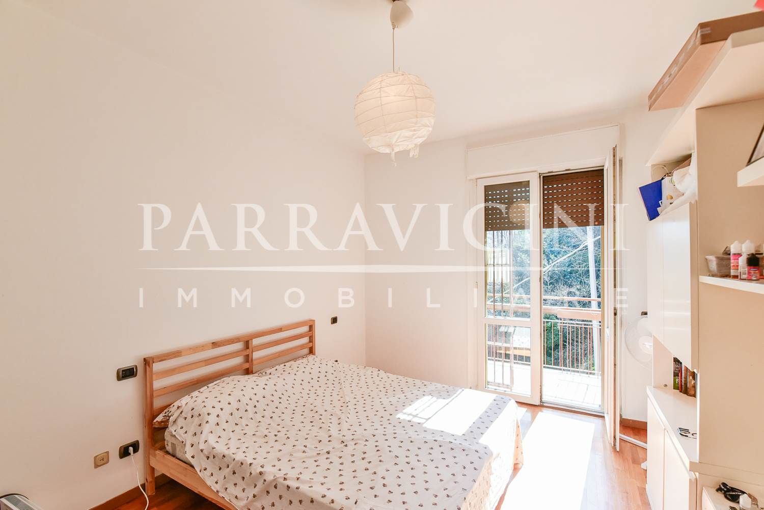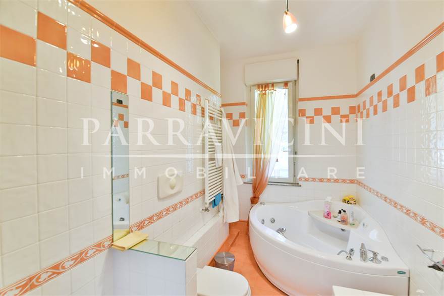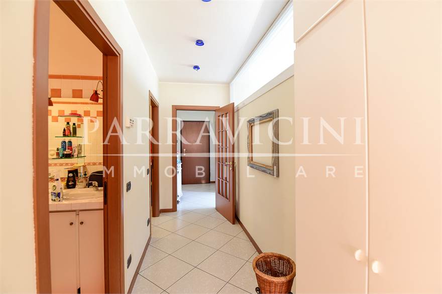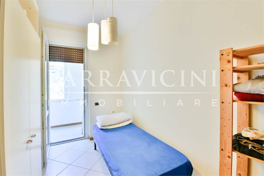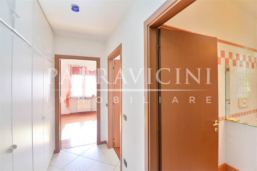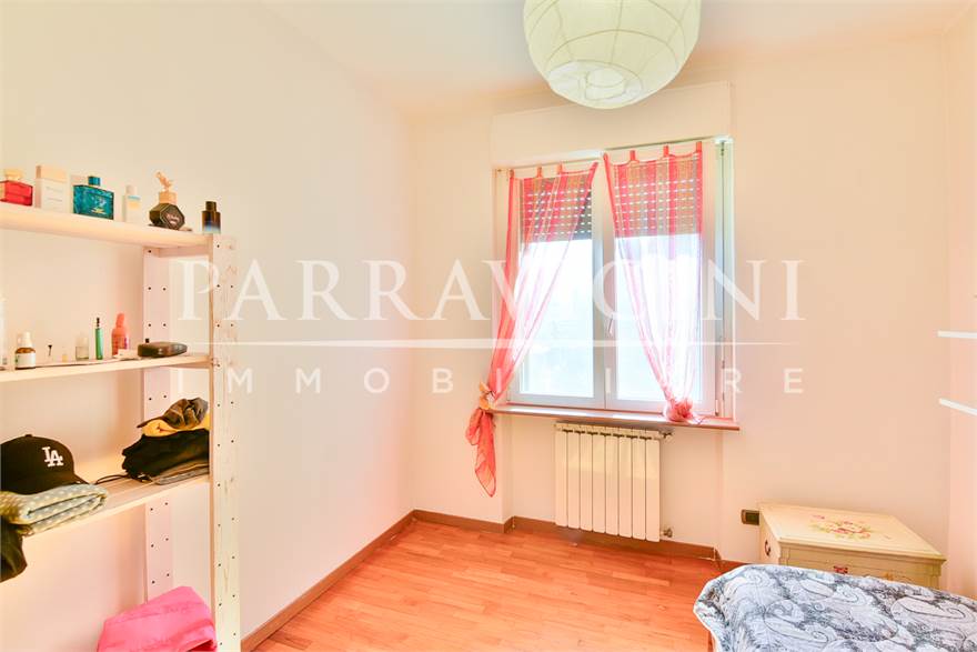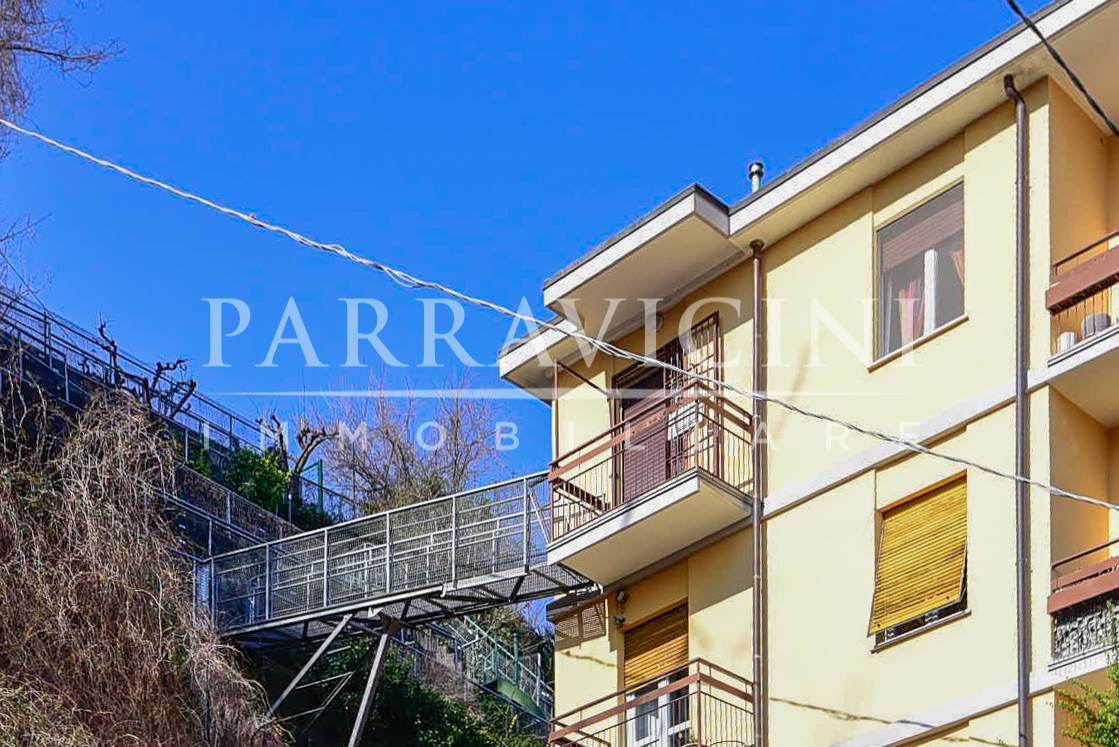 si tratta di un quarto piano senza ascensore (ma con comodo servoscala) disposto su unico livello abitativo con terrazzo e balcone sul fronte est con vista sulla città, balcone verandato sfruttato come lavanderia sul fronte ovest e balcone sul fronte sud dal quale la precedente proprietà ha creato un collegamento con il giardino privato sul retro ideale per esser sfruttato a orto nelle prime due balze e come zona attrezzata per barbeque e piscina nell'ultima già dotata di adduzione acqua ..
