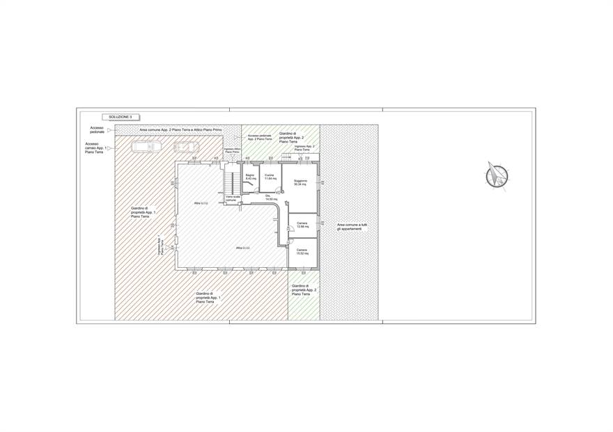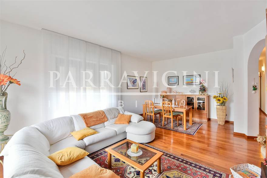 L’appartamento si sviluppa al piano rialzato per 110 mq, dal balcone del soggiorno si accede direttamente all’area privata attualmente rifinita con autobloccanti ma, in caso di necessità, facilmente trasformabile in giardino .. la proprietà si completa con un comodissimo box doppio