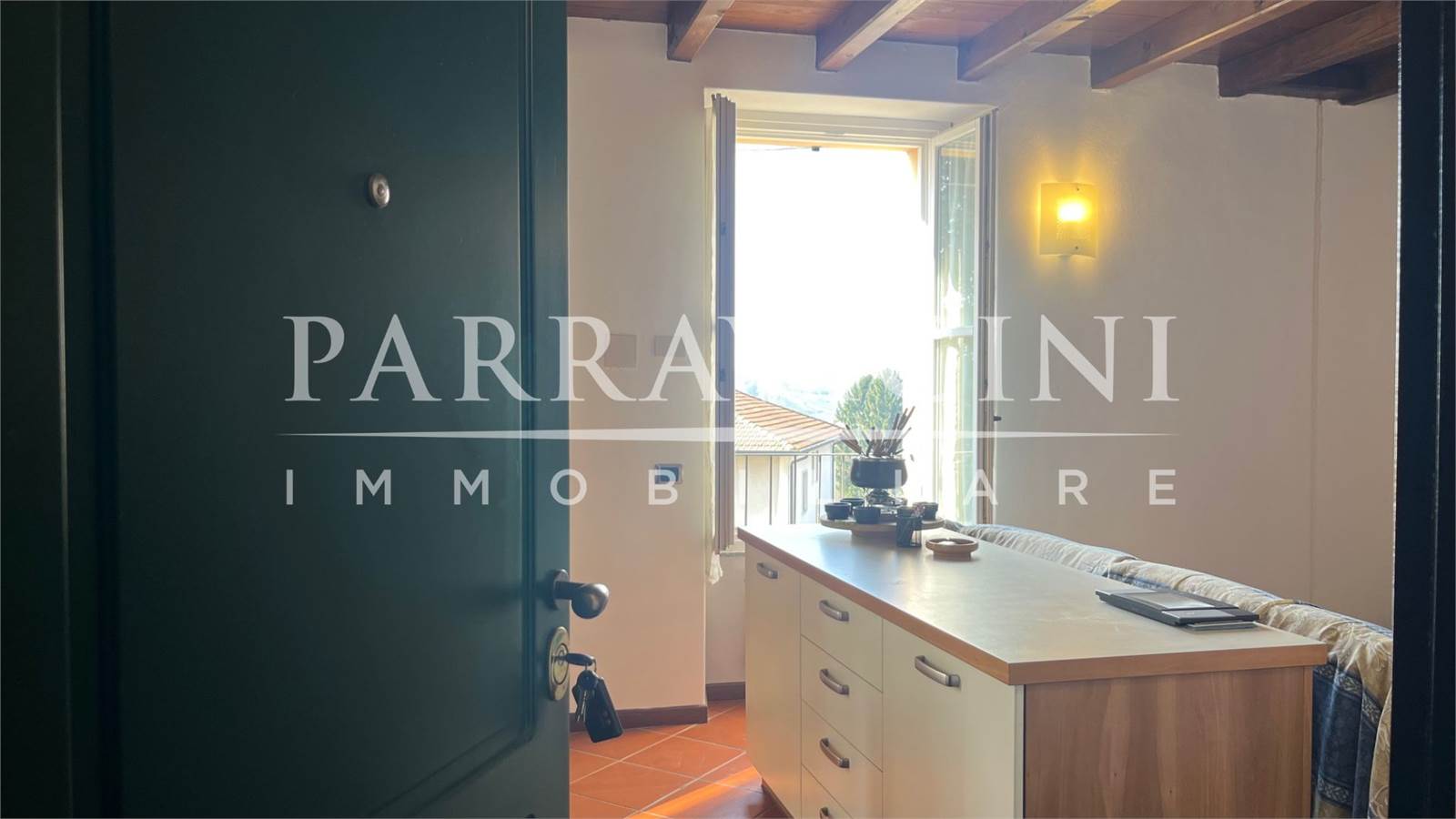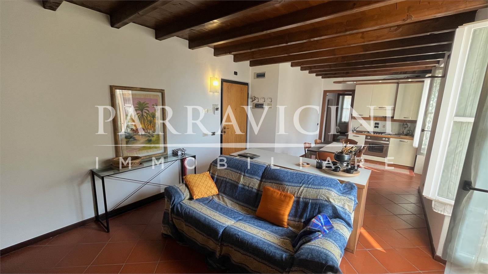 l'appartamento che consta di 73mq ha accesso dal pian terreno e si sviluppa comodamente su unico livello, si compone di soggiorno con cucina a vista con canna fumaria per eventuale stufa a pellet, bagno, ampia camera matrimoniale e strategico locale sottoscala sfruttato a lavanderia e ripostiglio .. completa la proprietà un ampio box singolo